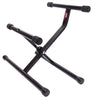 Short amplifier/ monitor floor stand - for professional speakers or music amplifiers - Steel tubing construction - Height adjustable by means of a clutch system - Braces (2x 30 cm = 11 3/4 in. W) feature rest pads and legs (2x 50cm = 19 3/4 in. W) are fitted w/ rubber feet - Tubing size: 30 x 15 mm / Ø25 mm (1 3/16'' x 19/32 in. w/ Ø 1 in.) - Height/ depth range: 16/ 34 to 28/ 23 cm (6 5/16 / 13 3/8 to 11 / 9 in.)- Load capacity: 40 kg (88 Lbs) - Weight: 1,9 kg (4 1/4 Lbs)